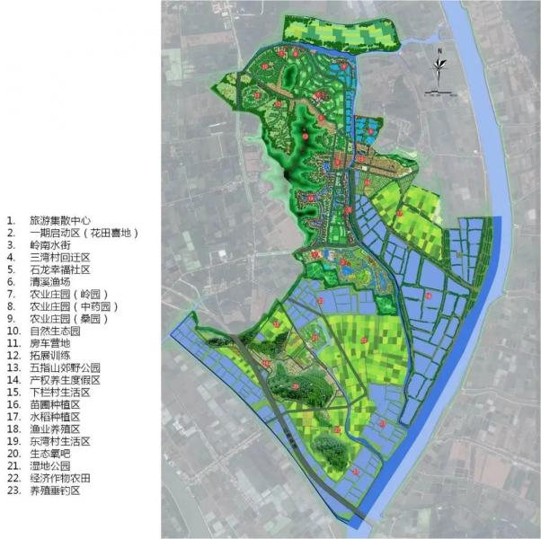 此外,美麗南方田園綜合體擬將規劃區設計為“一軸兩翼三帶八區”的總體布局結構。