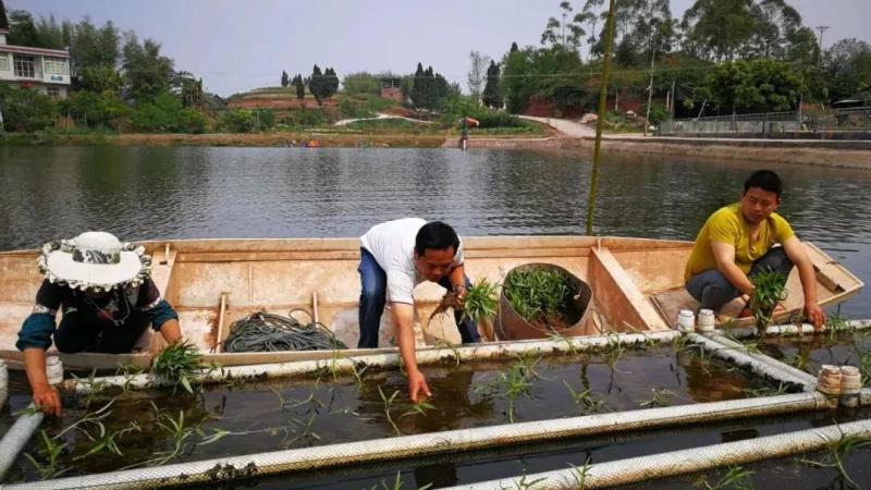 其做法就是漂浮在200畝魚塘水面的網格里栽種空心菜。因為,水體富營養化,主要是氨氮、亞鹽、PH值等含量超標造成的。而在水面栽種空心菜可以吸收氨氮、亞鹽等一系列水里的富營養化成分,有助于空心菜的生長。同時,空心菜藤蔓長滿后還可以遮陰,防止魚塘水份蒸發,保持水體溫度,為魚類創造一個良好的成長環境。