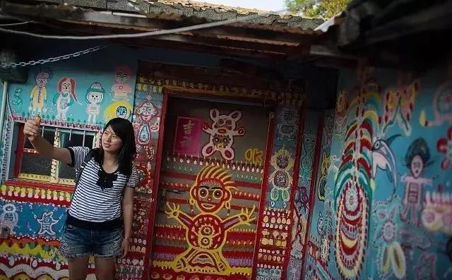 1.臺(tái)灣眷村彩虹村。一個(gè)80多歲的老爺爺,十幾年如一日,每天在建筑上、站牌上、馬路上涂鴉,把一個(gè)瀕臨拆遷的小村子變成了一個(gè)著名的旅游景點(diǎn)。