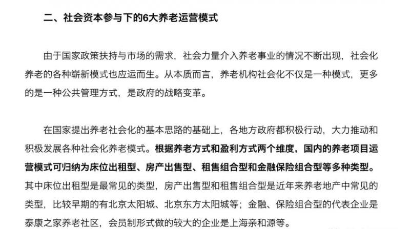 現(xiàn)階段,我國(guó)在以家庭養(yǎng)老為基礎(chǔ),以社區(qū)養(yǎng)老為依托,以機(jī)構(gòu)養(yǎng)老為補(bǔ)充的基本養(yǎng)老服務(wù)模式下,隨著社會(huì)資本的廣泛參與,不斷催生出新的運(yùn)營(yíng)模式。但傳統(tǒng)養(yǎng)老依然存在種種弊端,難以克服其養(yǎng)老的房地產(chǎn)化傾向的同時(shí),由于其公益性質(zhì),收益空間也大大受到限制。