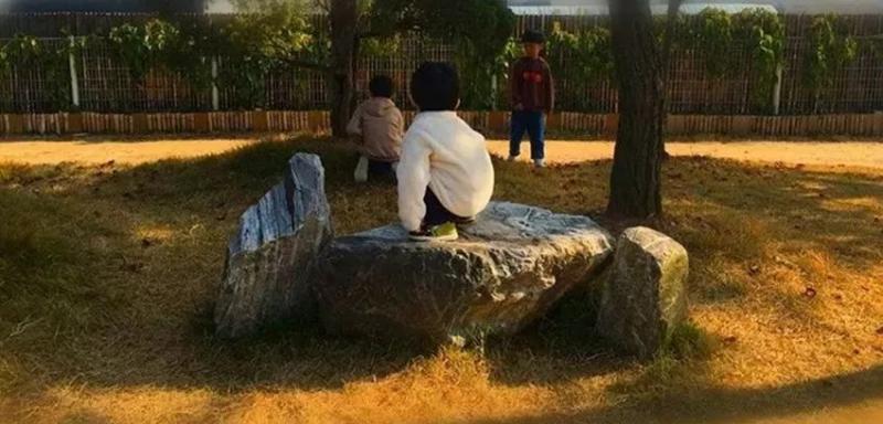 由于不準許安裝兒童游樂設施,孩子們只能在自然中尋找快樂,在大樹下、草地里和石頭上等地方玩耍,和家人一起享受自然而然的生活。