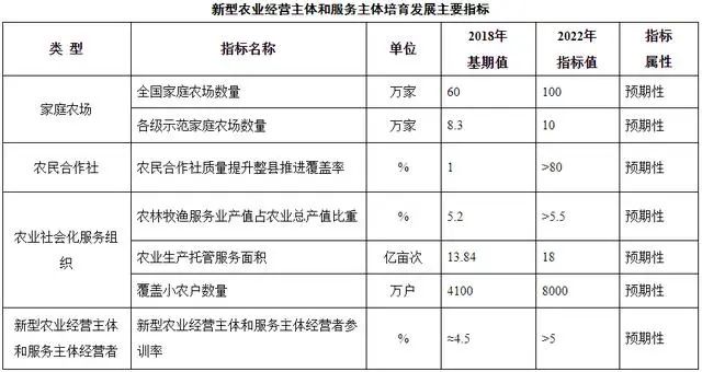 《規劃》明確,到2022年,各級示范家庭農場達到10萬家,農民合作社質量提升整縣推進基本實現全覆蓋,農業社會化服務組織基本形成服務結構合理、專業水平較高、服務能力較強、服務行為規范、覆蓋全產業鏈的農業生產性服務體系。