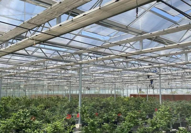 5G藍(lán)莓植物工廠里正在自動(dòng)噴淋降溫
