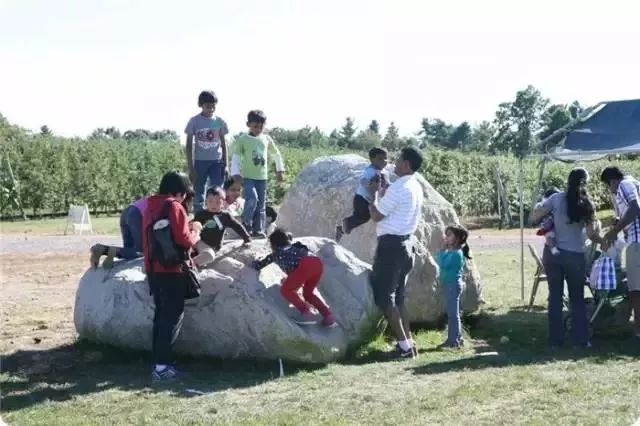 農(nóng)場(chǎng)有幾處大石頭,成為孩子們攀登玩耍的道具。