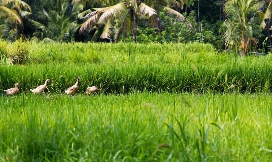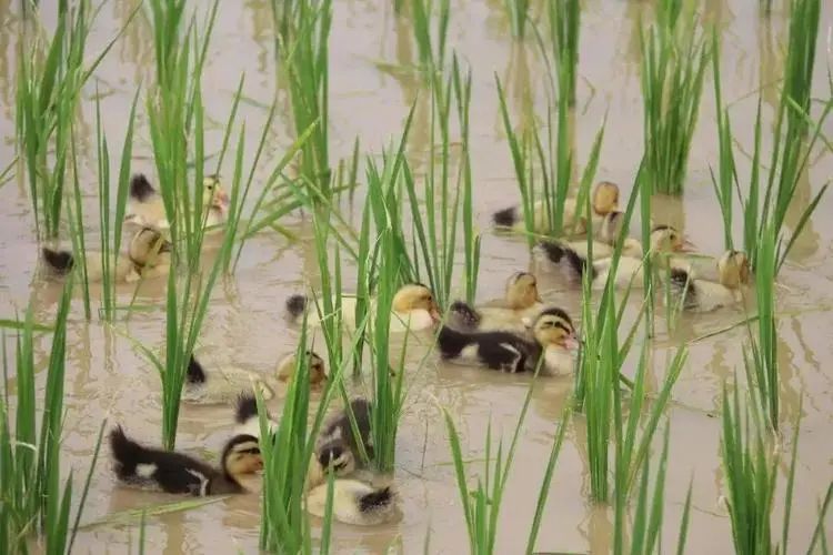 稻鴨共生。廣東陽西縣建300畝“稻鴨共生”示范田,一塊田,既種植又養殖,達到雙重收益。稻鴨共生”模式不僅降低了鴨子的養殖成本,同時可以明顯改善稻田的生態環境。鴨子在覓食過程中,可以吃掉水稻葉片背部的害蟲及蟲卵,產出的糞便是很好的有機肥料,其在水里的不斷游動,在加快水稻對養分吸收的同時也改良了土壤的通透性,達到了互利共生、高產、高效、無污染的生態高效種植效果。