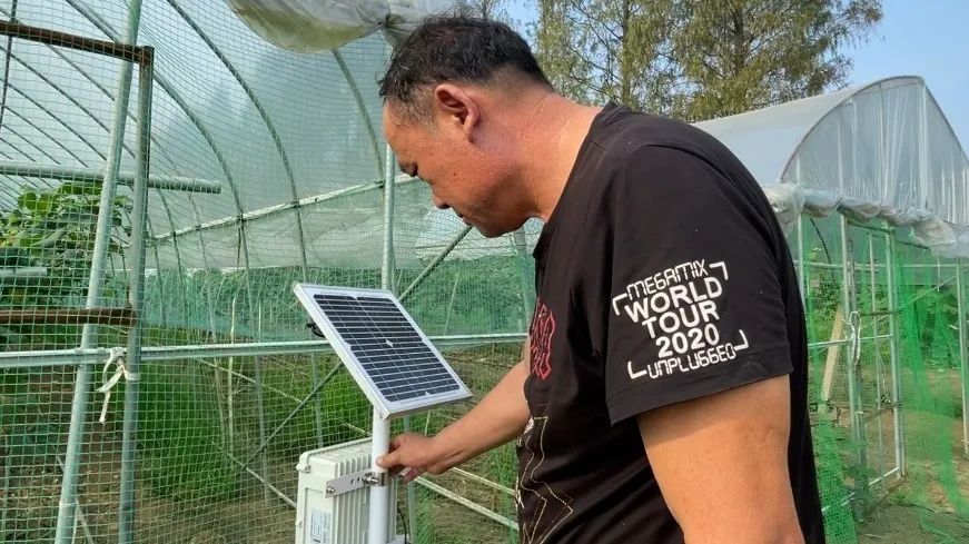 陳海明查看農場里的傳感設備