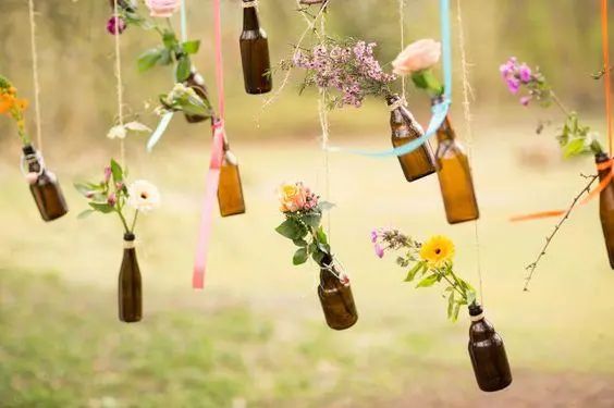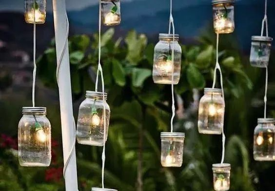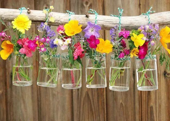 叮叮當(dāng)當(dāng)掛在樹上的精致玻璃瓶,一樣可以裝點(diǎn)也鮮花們,成為美麗的風(fēng)景。