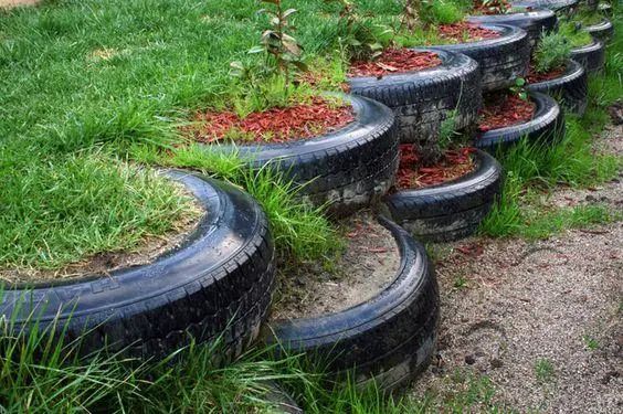 大自然與輪胎結(jié)合,鋪成一條路,做成臺(tái)階,還可以種植花草。