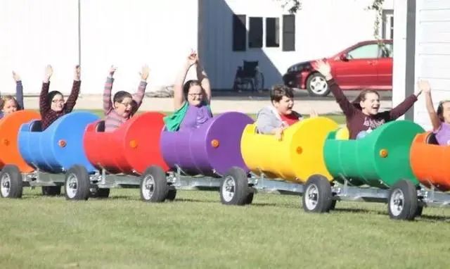 高大上的火車,造價(jià)成本太高,我們可以試試這樣的小火車,一個(gè)發(fā)動(dòng)機(jī)帶上簡(jiǎn)單的塑料桶乘客廂,成本低廉,卻特別受孩子喜歡。