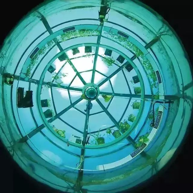 “采用正確的設(shè)計(jì)、保證溫室的結(jié)構(gòu)能夠抵御風(fēng)暴的來(lái)襲是最大的挑戰(zhàn)。我們將有機(jī)玻璃與鋼架結(jié)合在一起做出了個(gè)‘生物圈’。”這個(gè)半球體溫室直徑6英尺,高3英尺,并用28個(gè)可拆卸式的螺絲釘固定在海底。據(jù)Fontanesi表示,這種設(shè)計(jì)確保了溫室在風(fēng)暴來(lái)襲時(shí)的穩(wěn)定性,使其能夠承受一定范圍內(nèi)的振蕩,并防止其被海浪撞擊得支離破碎。植物通過(guò)生物圈內(nèi)壁凝結(jié)水滴使得內(nèi)部保持水分,其晝夜恒溫26度,濕度約約83%,是植物生長(zhǎng)的最佳環(huán)境。大量的二氧化碳也促進(jìn)其生長(zhǎng)。