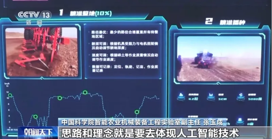 中國科學院智能農業機械裝備工程實驗室副主任 張玉成:思路和理念就是要體現人工智能技術對我們農場的變革。人工智能技術介入了以后,我們可以用一個人去控制10臺、20臺農機。同時在這個基礎上,我們要靠信息技術把節約成本的問題、增產的問題、綠色的問題,這些問題在伏羲農場里邊都有可量化的指標來得到體現。