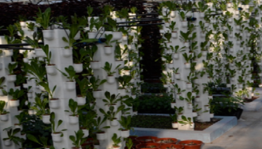 栽培缽上有不同數量栽培孔或利用特制PVC管組合成立體栽培設施。