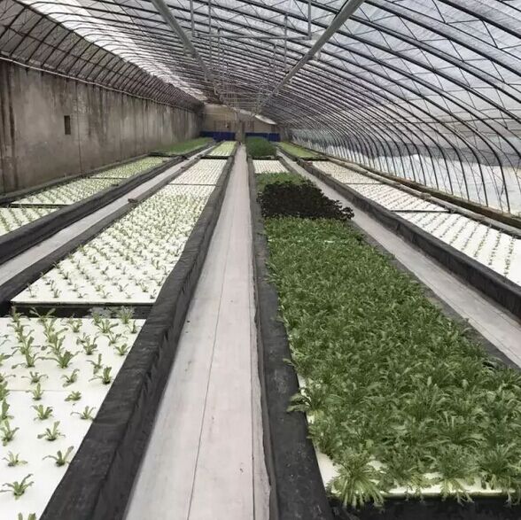 1、閉鎖循環模式:養殖池排放的水經由硝化床微生物處理后,以循環的方式進入蔬菜栽培系統,經由蔬菜根系的生物吸收過濾后,又把處理后的廢水返回至養殖池,水在養殖池、硝化床、種植槽三者之間形成一個閉路循環。
