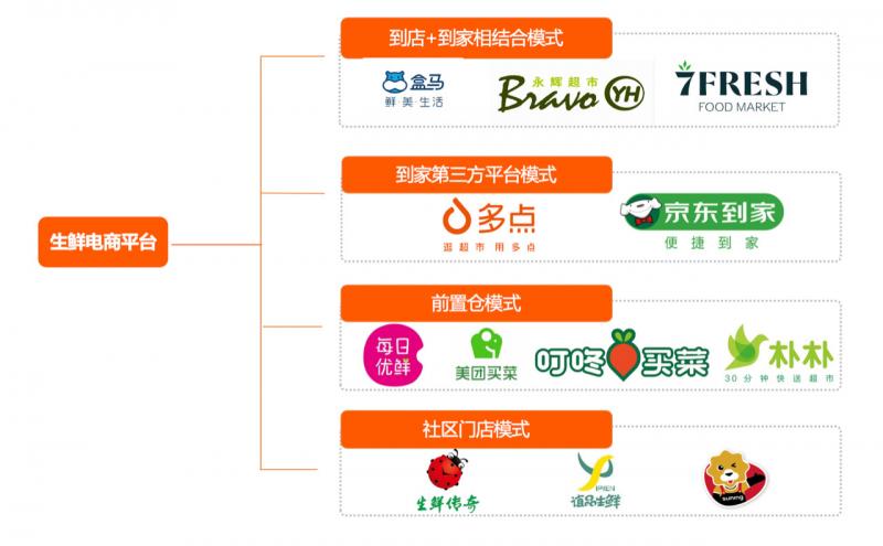 隨著消費者對品質(zhì)需求的提升,生鮮食品的消費場景逐步多元化,由單一線上或單一線下渠道,逐步演變?yōu)榫€上線下相結(jié)合,消費者生鮮消費方式的選擇多樣化、便利化,從而提高了用戶體驗與忠誠度。目前生鮮電商主要模式大致可以分為四大類: