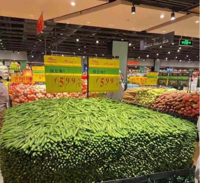 基地特殊商品直通賣場,門店安排卸貨、商品保鮮、毛菜加工、分等級并完成開業前的商品上架作業