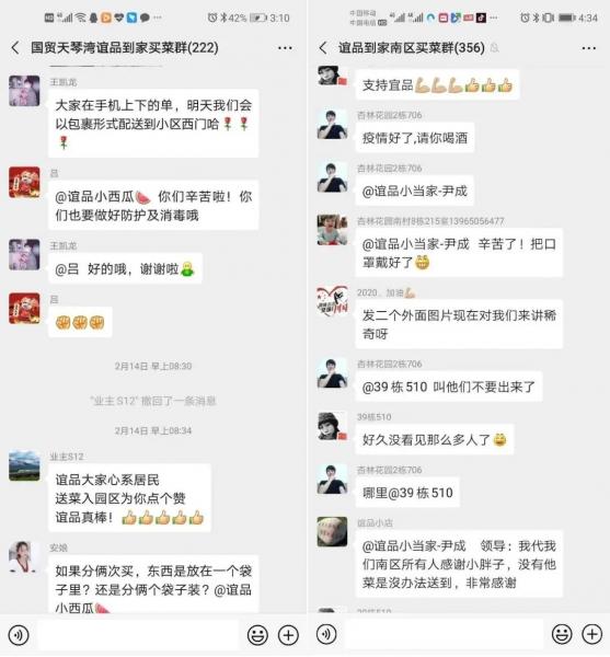 除了在小區設“無接觸”自提點,他們還通過群接龍的方式,合理安排取菜時間。同時,也通過微信群同步貨品照片的方式,減少丟失率。