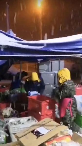 這段時間,顧客平均每單的采購量大了很多,公司和門店無法擺放這么多商品,他們只能在寒風或大雪天氣的室外臨時搭棚,在棚內完成分揀工作。