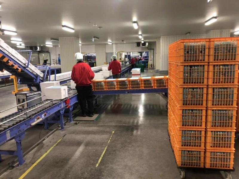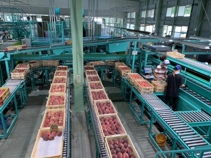 (產地端的桃子采后分揀與包裝全程冷鏈直達渠道)