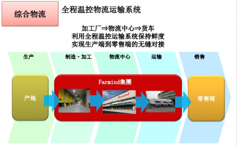 (farmind集團生鮮成本控制上從產地直采到采后標準化管理、運輸流通供應鏈、渠道零售,從單一生鮮完成了多品類生鮮混裝供應鏈配送)