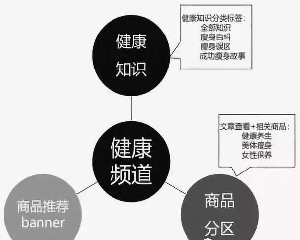 在確定了“健康瘦身”的概念后,盒馬鮮生將在其應(yīng)用中建立相應(yīng)的渠道,從活動(dòng)橫幅、熱點(diǎn)區(qū)域、主題選擇等方面提供“推薦”功能,不僅可以推廣盒馬的活動(dòng)產(chǎn)品,還可以幫助用戶做出選擇和決策。在頻道內(nèi)容操作方面,我們可以從用戶的痛點(diǎn)和需求出發(fā),向用戶呈現(xiàn)和推薦重要信息,幫助他們做出選擇。在流量運(yùn)營(yíng)方面,選擇優(yōu)質(zhì)頻道,提高曝光率,獲取流量。見(jiàn)圖3。