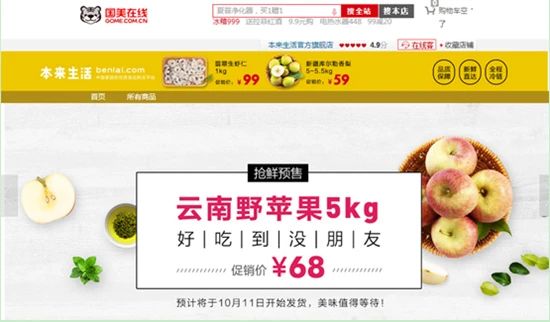 2016年10月,國美在線與生鮮電商本來生活網達成戰略合作。