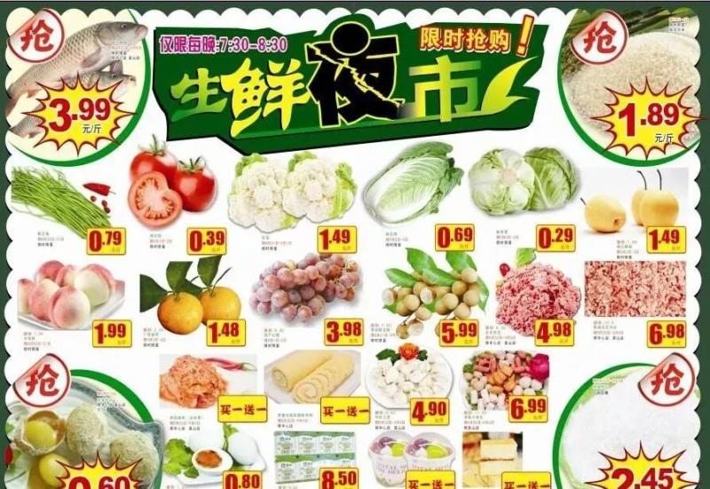 3、 商品類屬要分明:海報排版和賣場商品陳列是一致的,比如蔬菜區(qū)、水果區(qū)、水產(chǎn)區(qū)、鮮肉區(qū)。每一個類屬的商品應(yīng)該集中放在一個區(qū)域,并且版塊有明顯區(qū)分。不要蔬菜里面有鮮肉的商品,水果區(qū)域里又有水產(chǎn)的商品,這樣一混亂后,讓顧客尋找商品就不方便。本來品項是齊全的,這樣一亂會讓顧客覺得沒有什么品項。