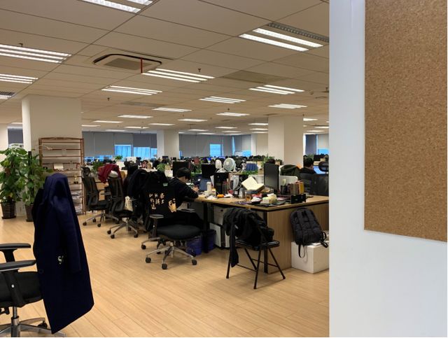 各個工位處于滿員狀態,員工們未因負面消息而有所懈怠。備戰“雙十二”等計劃仍然張貼在會議室門口,甚至有安鮮達員工還穿著印有“大閘蟹”相關字樣的工作衛衣。(注:自2017年7月以來,天貓和安鮮達加入了“大閘蟹”物流市場。)