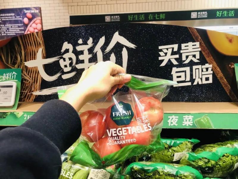值得注意的是,“買貴包賠”是一大亮點。七鮮依賴京東自有的供應鏈系統,超市內標注有“七鮮價”標簽的商品價格可保證低于同城同類超市,并向顧客承諾買貴包賠。
