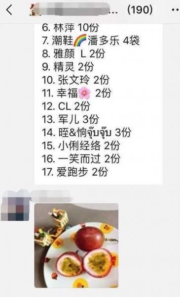 比如有100個人報單,群接龍就知道每個人具體要什么、要多少份。這個時候沒有付款的,我作為一個團長,多數(shù)情況下會我先付款把東西買回來,然后放到我這兒,再去群里面通知顧客過來提貨,提的時候現(xiàn)場付款。