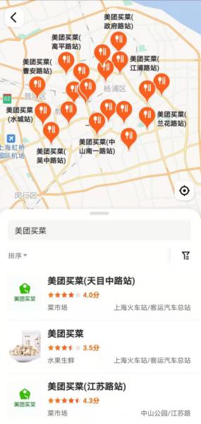 打開美團APP——美團買菜,根據用戶的地理位置,系統會自動配置最近的“美團買菜”提貨點,用戶下單之后就可以盡快提到商品。