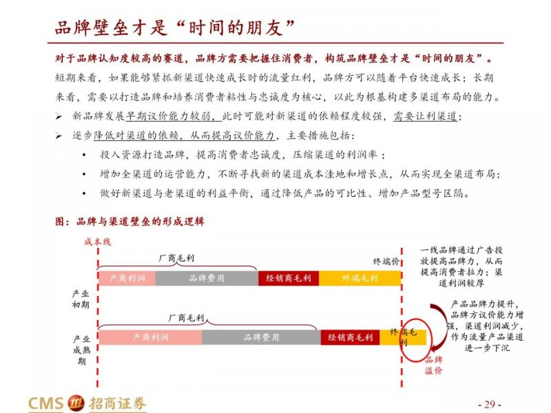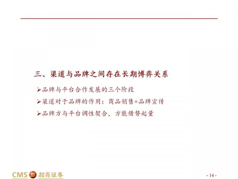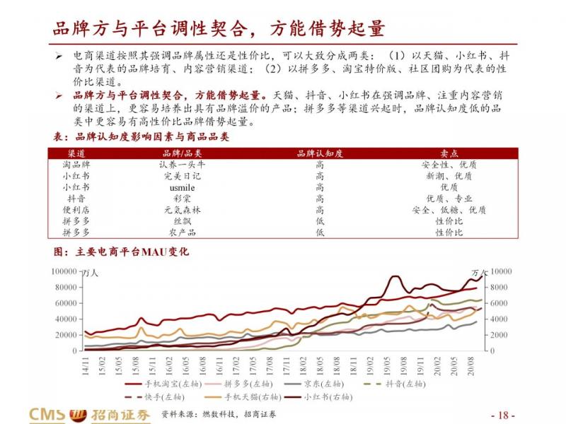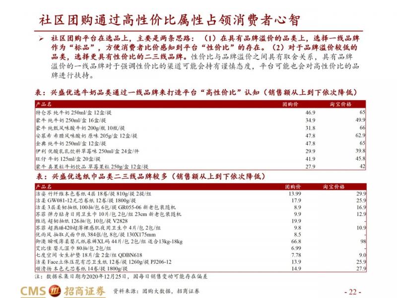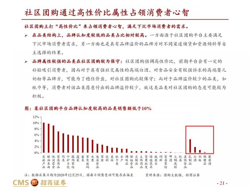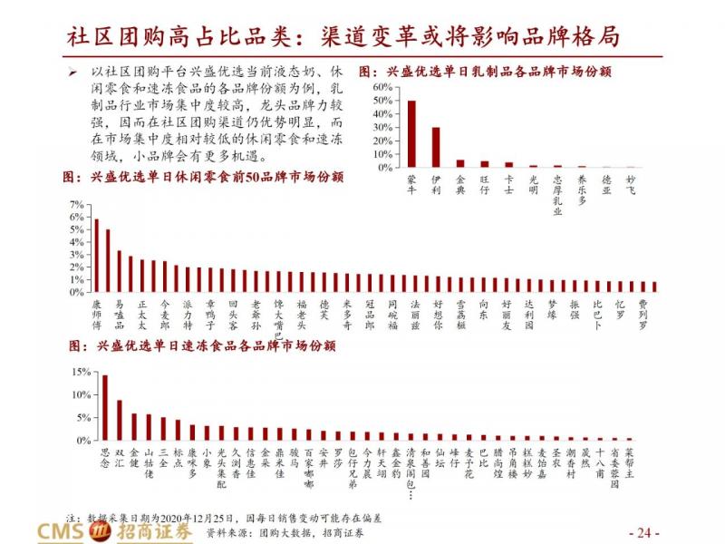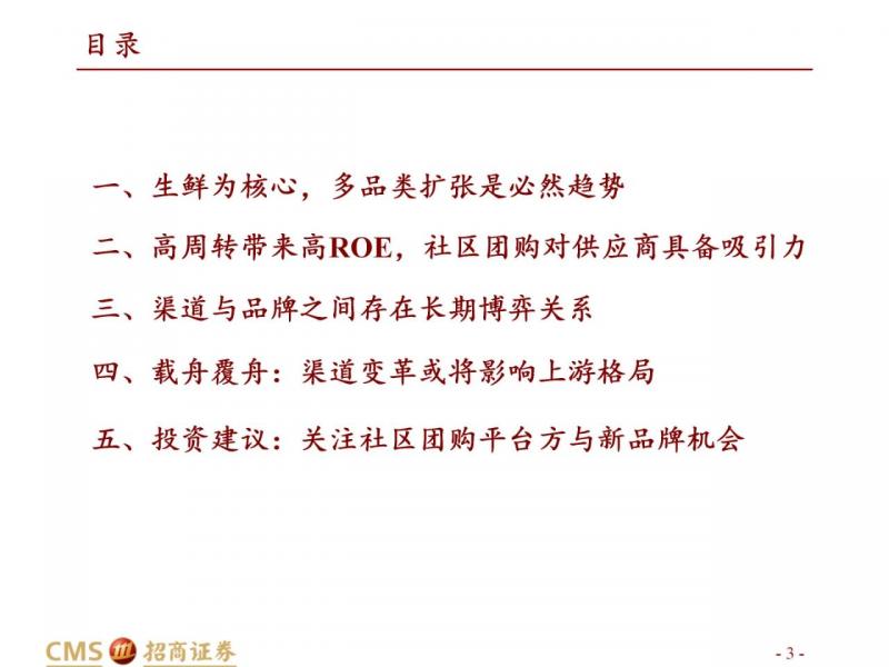 縱觀零售業的發展歷史,每一次大的渠道變革不僅是一場效率革命,還會深刻影響品牌方。社區團購長期市場規模超萬億,以高性價占領消費者心智,并可高效下沉至鎮村級市場,對于某些高頻+剛需+低品牌溢價的品類將會成為重要渠道,或將帶來上游品牌格局的變化。從投資角度看,二三線品牌產品更具性價比、原經銷渠道包袱往往較輕,有望借助社區團購迎來新的發展機遇,但起量后仍需重視品牌力的塑造與多渠道的運營能力,方能成為“時間的朋友”。