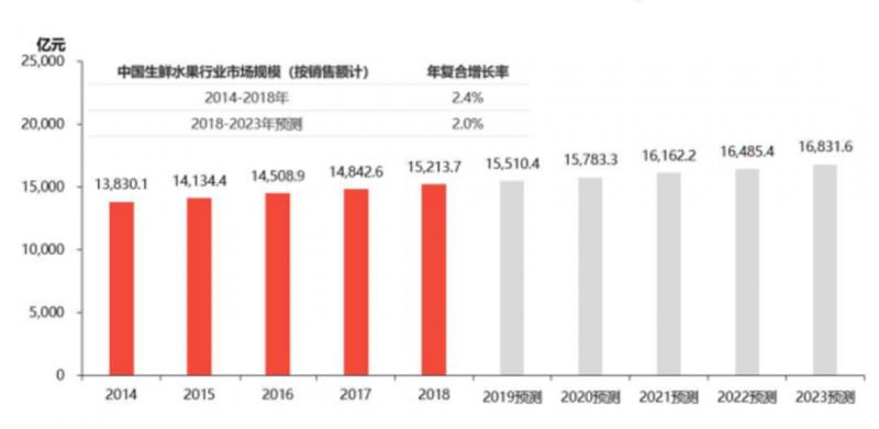 2014-2023年預測中國生鮮水果行業市場規模
