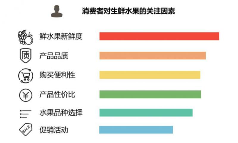 從消費者對生鮮水果的關注因素分析,消費者對生鮮水果的關心因素包括生鮮水果新鮮度、產品品質、購買便利性、產品性價比、水果品種選擇、促銷活動等。