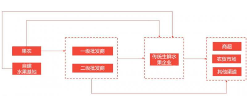 傳統生鮮水果企業商業模式單一,從自建水果種植基地、果農或水果批發商處采購生鮮水果,然后在自營門店銷售或通過物流配送至農貿市場、超市等渠道,最終消費者需自行前往線下實體店鋪購買所需生鮮水果。