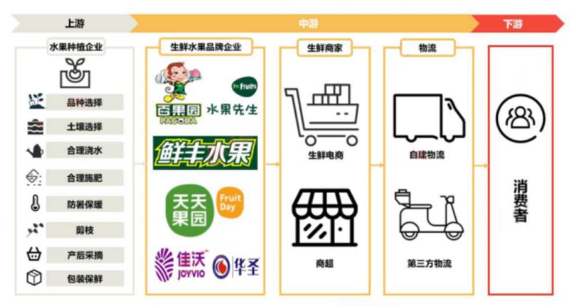 中游參與主體為水果品牌企業、生鮮商家及物流環節。