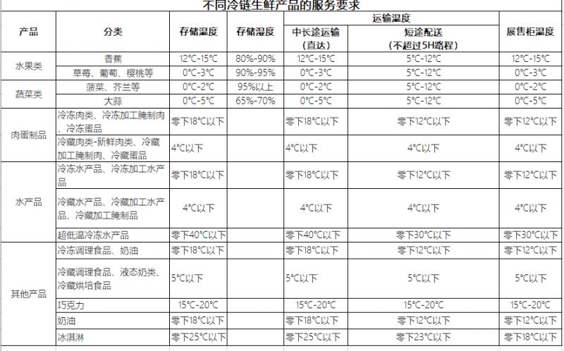 從表格中可以看出冷鏈供應鏈服務的產品分類眾多,其中僅食品類就分為生鮮、冷凍、冷藏。其中有天然生長、有初級加工、有深加工等,不同的產品對溫度、包裝等有不同的要求,只有結合產品進行量身定制的供應鏈服務,從源頭控制好每一個環節,才能夠打造一套高標準的冷鏈供應鏈服務體系。