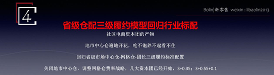 第4個變化,社區(qū)團(tuán)購的倉配體系已經(jīng)回歸到了三級配送的一個體系,這個體系目前在全國方面已經(jīng)開始回到這個賽道上,由于過去的地市中心倉市場在多范圍的覆蓋的時候,包括網(wǎng)格倉。我們的網(wǎng)絡(luò)上現(xiàn)在幾大社團(tuán)基本上都推出了新的備戰(zhàn),尤其是美團(tuán),目前整個的費(fèi)率可以說是改革還是蠻大的。