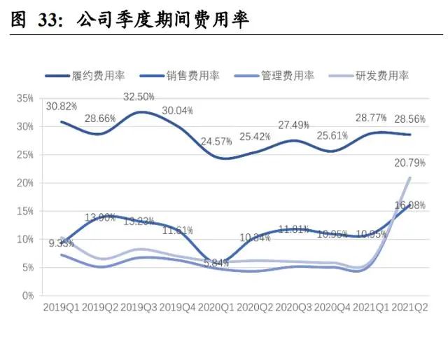 持續(xù)加大投入,虧損繼續(xù)擴(kuò)大。從季度凈利潤(rùn)來(lái)看,公司尚未實(shí)現(xiàn)盈利,虧損逐季 擴(kuò)大,2021Q2 虧損額達(dá)到 19.37 億元;從季度利潤(rùn)率來(lái)看,2020Q1 在疫情中,公 司虧損率有所收窄,但隨著公司投入不斷提高,虧損持續(xù)擴(kuò)大。