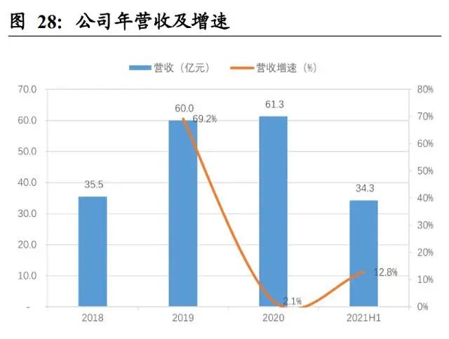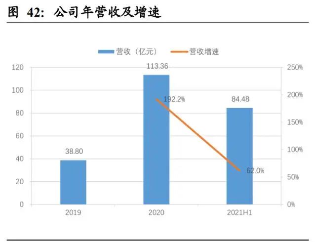 從收入來(lái)看,營(yíng)收逐季增長(zhǎng),疫情后增速雖然有所下降,但同比增速仍維持較高水 平。從年收入來(lái)看,2020 年實(shí)現(xiàn)營(yíng)收 113.36 億元,同比增長(zhǎng) 192.2%;2021H1 實(shí)現(xiàn) 營(yíng)收 84.48 億元,同比增長(zhǎng) 62%。從季度收入來(lái)看,公司營(yíng)收逐季增長(zhǎng),2021Q2 公 司單季營(yíng)收達(dá) 46.46 億元,創(chuàng)公司營(yíng)收新高,顯示出公司良好的增長(zhǎng)態(tài)勢(shì)。