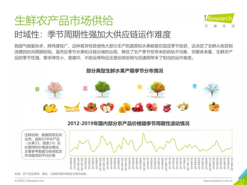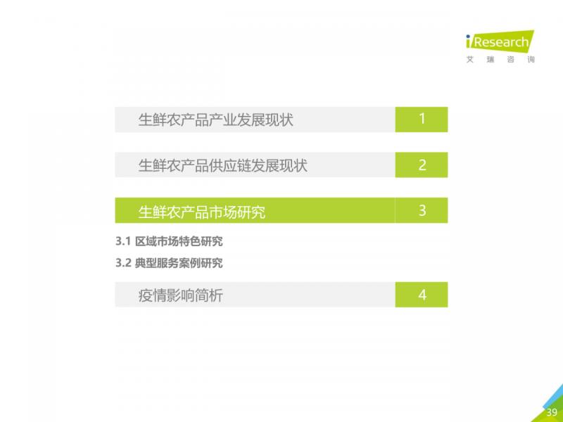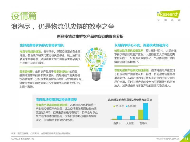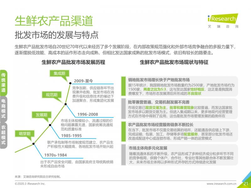 《2020年中國生鮮農產品供應鏈研究報告》剖析國內生鮮農產品市場流通現狀與物流供應鏈模式,研究各區域的市場特征和供應鏈服務案例,并通過研究供應鏈現狀分析行業未來發展的重要趨勢,能夠幫助生鮮供應鏈從業者和相關人士更清晰的了解行業規律,辨識未來模式的走向和市場演進趨勢。