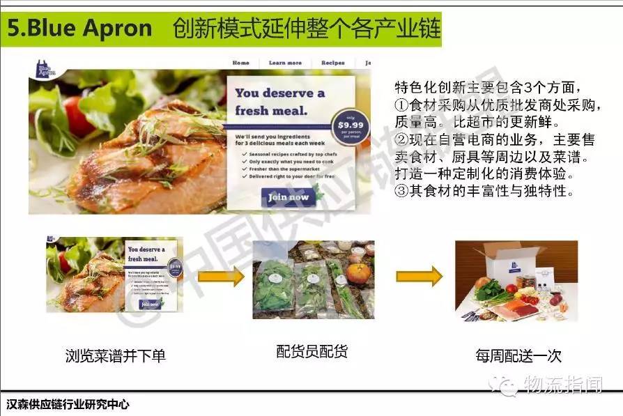 第二,Blue Apron在進行自營電商的一系列服務,包括食材、廚具,也就是剛才我們說創意的廚具,定制化的體驗。