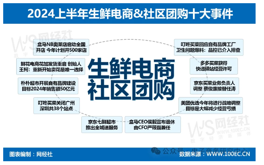 導讀:上半年,生鮮電商及社區團購領域動作頻頻。一方面,平臺不斷拓展業務,如盒馬NB奧萊店啟動全國開店,樸樸超市開展自有品牌建設,京東七鮮超市推出全城送服務。另一方面,人員變動偶有發生,盒馬CEO侯毅宣布退休,京東買菜業務負責人調整。對此,網經社數字零售臺(DR.100EC.CN)對2024上半年生鮮電商&社區團購十大事件進行盤點回顧。