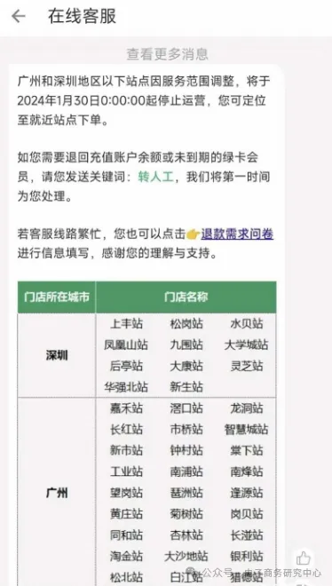 2月27日,有消費者稱,自今年1月30日起,因服務范圍調整,叮咚買菜廣州嘉禾站、龍洞站、棠下站、琶洲站、獵德站共計27個站點和深圳華強北站、靈芝站共計11個站點停止運營。