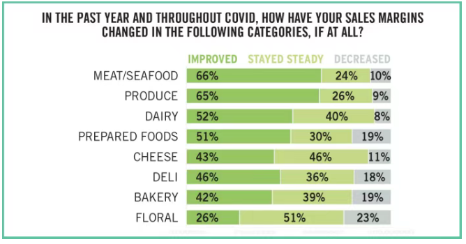 根據(jù)2021年的年度報告顯示,在全球很大程度上,生鮮食品零售市場在整個大流行期間蓬勃發(fā)展。22年在3月中旬至4月中旬對零售商和批發(fā)商進行的一項調查中,超過三分之二的零售商表示,他們在過去一年中由于新冠的影響自發(fā)的對旗下易腐品相關的商品進行了采購策略上的調整。對于大多數(shù)零售商來說,調整產生了積極的結果:81%的企業(yè)表示相關產品的銷售額在過去12個月中有所增加。三分之二的企業(yè)表示銷售額增長了15%,18%的人表示銷售額增長了10-12%。
