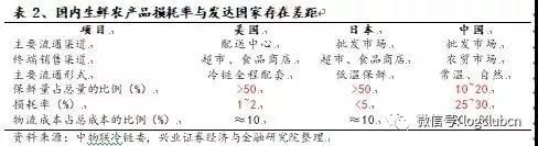 多層運(yùn)輸、裝卸,損耗率大幅提高。多級供應(yīng)鏈涉及流通環(huán)節(jié)眾多,且由于其“產(chǎn)全國銷全國”的市場特點(diǎn),長途運(yùn)輸不可避免,國內(nèi)批發(fā)零售冷鏈物流尚不完善,運(yùn)輸環(huán)節(jié)損耗率較高。產(chǎn)品最終達(dá)到消費(fèi)者手中花費(fèi)時間較長,國內(nèi)生鮮農(nóng)產(chǎn)品25%~30%的損耗率相較于美1%~2%、日5%非常高。
