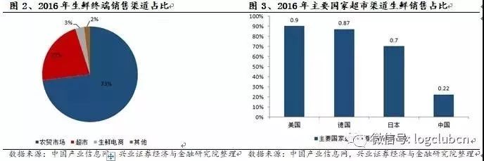 當(dāng)前生鮮零售以農(nóng)貿(mào)市場為主,未來超市直采為必然趨勢。由于超市生鮮購物環(huán)境整潔、其價格較農(nóng)貿(mào)市場更有競爭力,消費(fèi)者開始轉(zhuǎn)變只去農(nóng)貿(mào)市場購買生鮮的傳統(tǒng)觀念。從下游生鮮終端渠道銷售數(shù)據(jù)來看,2016年73%生鮮通過傳統(tǒng)農(nóng)貿(mào)市場交易,仍穩(wěn)居零售端市場主體地位,其零售攤位的分散性限制規(guī)模化采購,使中間商整合難度提升,增加了中游流通環(huán)節(jié)。
