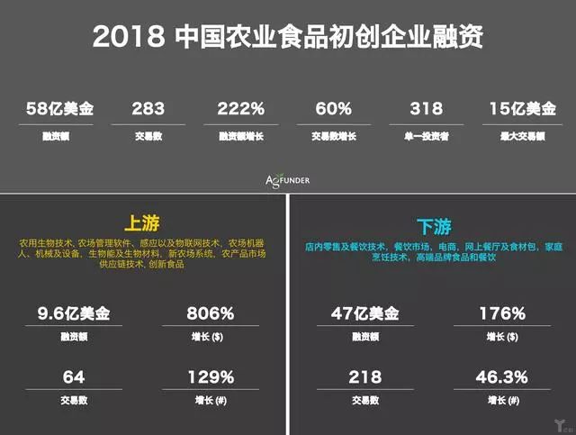 盡管中國的宏觀經濟增速放緩,2018年對于農業中國食品初創企業的發展和創新來說,卻是個好年份。2018年,中國農業食品企業早期融資總額約58億美金,交易數量較去年增長了60%。