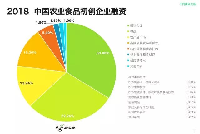 由于消費者對于食品體驗升級的需求,初創企業領域的融資多集中在供應鏈的下游,下游融資金額約占整體投資總額的81%。但是2018年,上游業務靠近農民的初創企業投資增長806%,占整個融資總額的16.6%。