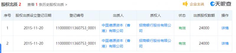 然而完成增資不到 8 個(gè)月,2014 年 11 月,德源資本便將持有的 2.4 萬中石化銷售公司股份質(zhì)押給了招商銀行。