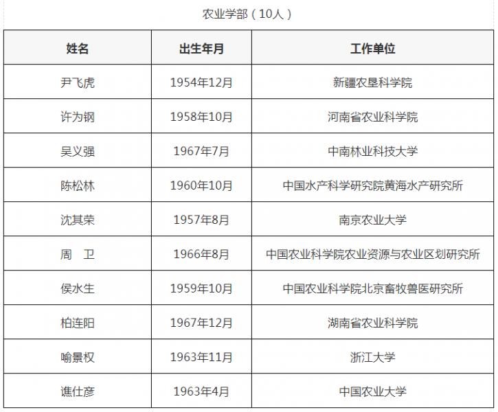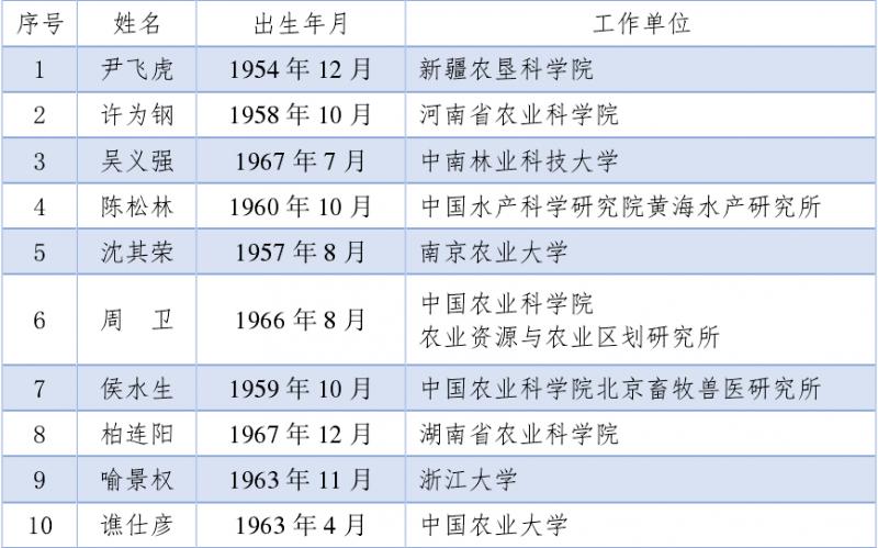 值得注意的是,2021年中國工程院院士名單中,農業學部共有10人上榜。